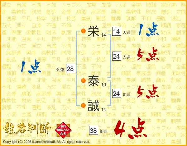 栄泰誠さんの総運は38画の4点!