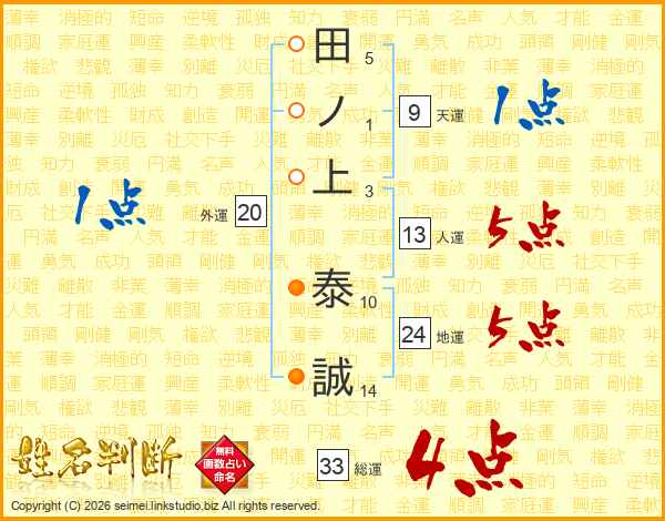 田ノ上泰誠さんの総運は33画の4点!
