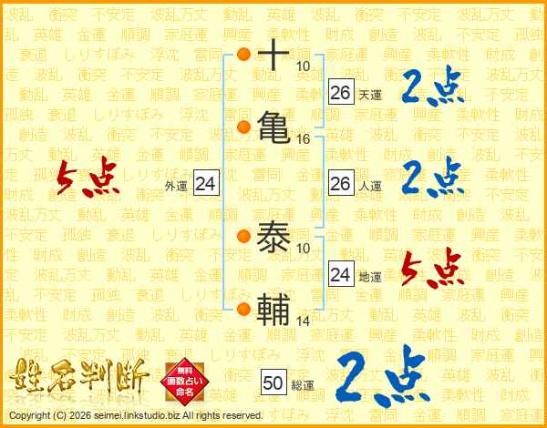 十(10画)亀(16画) 泰(10画)輔(14画)