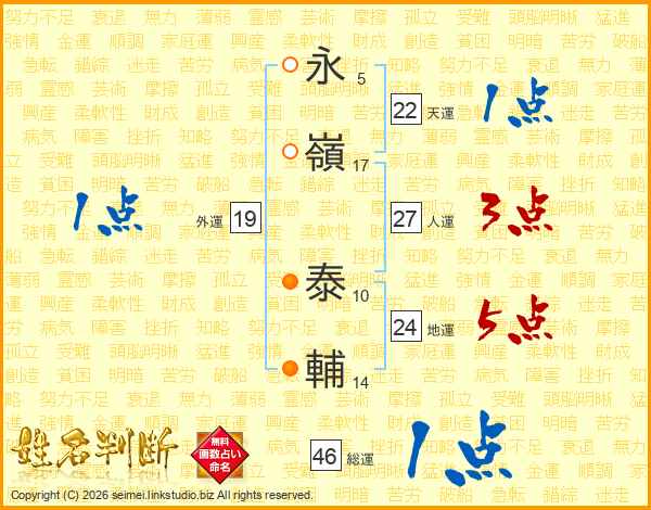 永嶺泰輔さんの総運は46画の1点!