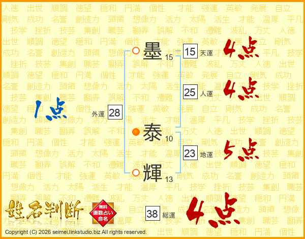 墨泰輝さんの総運は38画の4点!