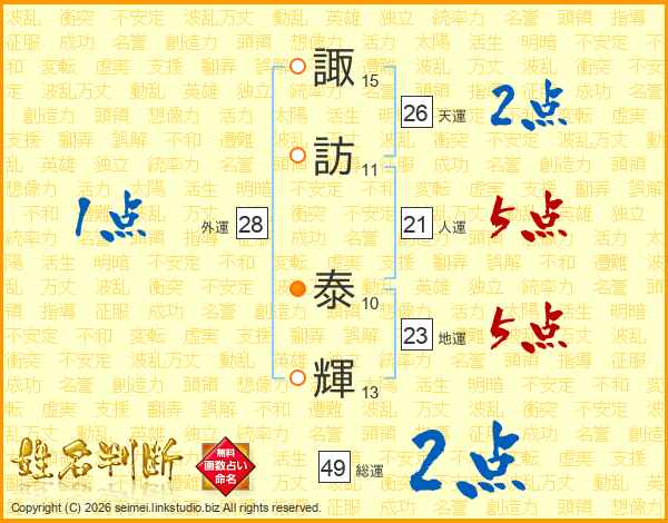諏訪泰輝さんの天運は26画の2点!