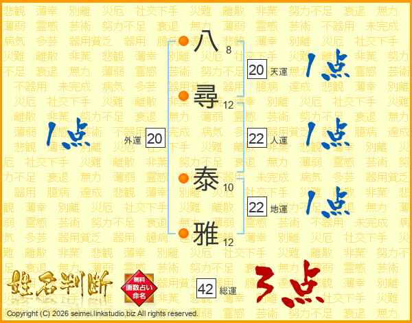 八尋泰雅さんの総運は42画の3点!