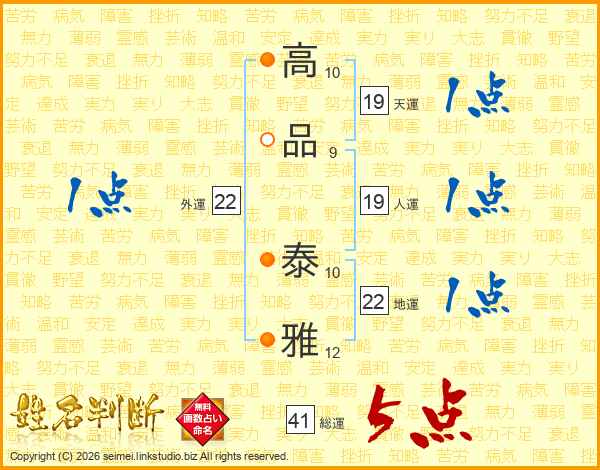高品泰雅さんの総運は41画の5点!