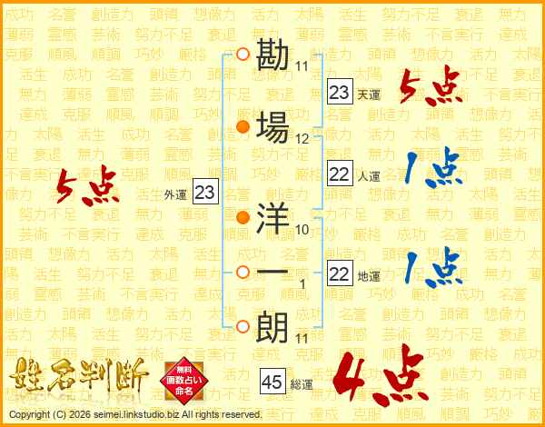 勘場洋一朗さんの天運は23画の5点!