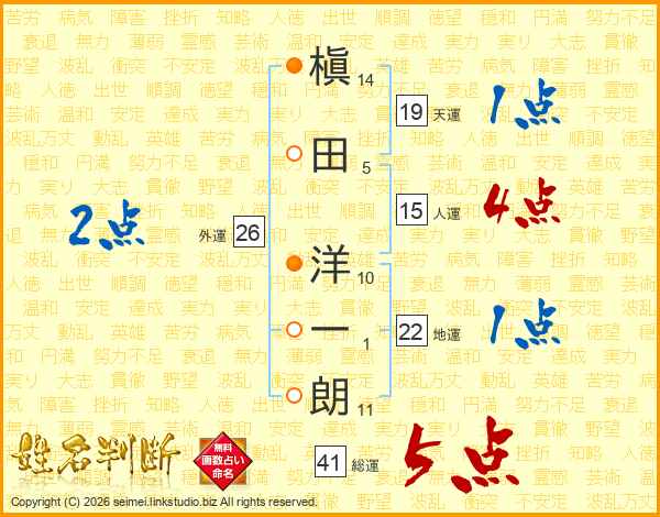槇田洋一朗さんの総運は41画の5点!