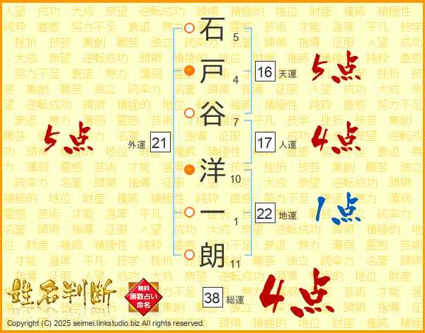 石戸谷洋一朗さんの総運は38画の4点!