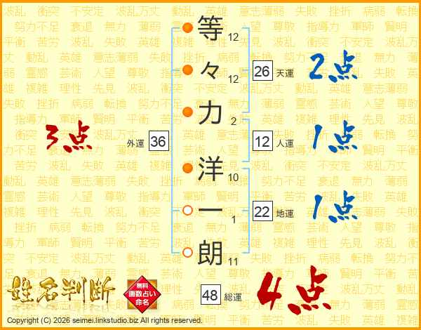 等々力洋一朗さんの天運は26画の2点!