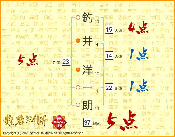 釣(11画)井(4画) 洋(10画)一(1画)朗(11画)