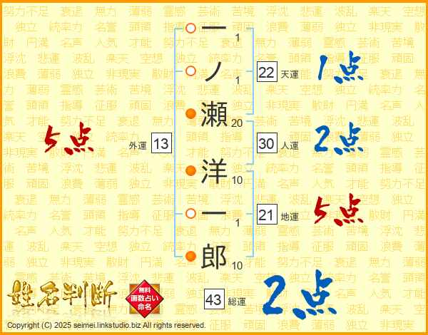一ノ瀬洋一郎さんの総運は43画の2点!