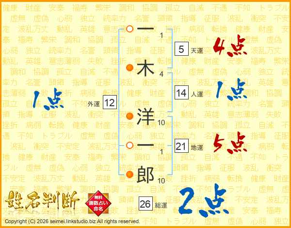 一木洋一郎さんの総運は26画の2点!