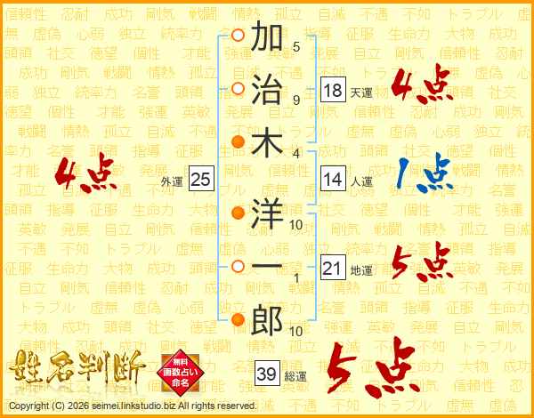加治木洋一郎さんの総運は39画の5点!
