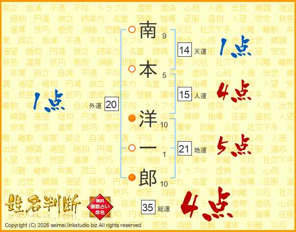 南本洋一郎さんの天運は14画の1点!