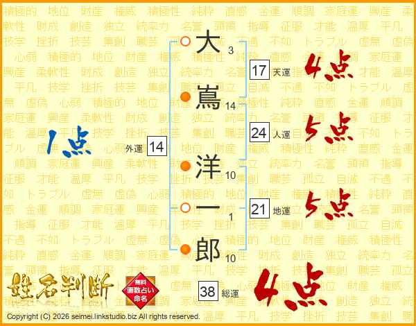 大嶌洋一郎さんの総運は38画の4点!