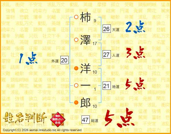 柿(9画)澤(17画) 洋(10画)一(1画)郎(10画)