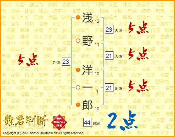 浅野洋一郎さんの総運は44画の2点!