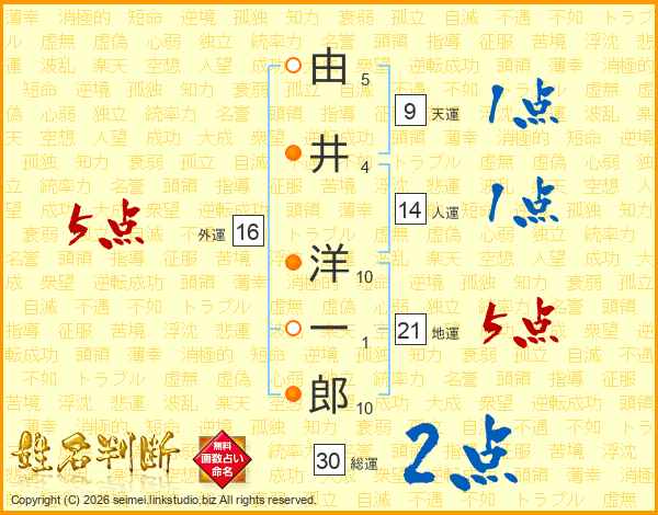 由井洋一郎さんの地運は21画の5点!