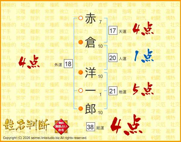 赤倉洋一郎さんの総運は38画の4点!