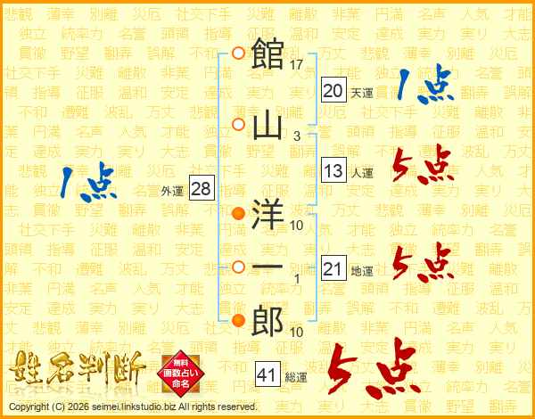 館山洋一郎さんの地運は21画の5点!