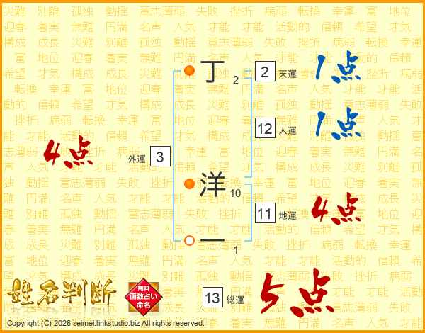 丁洋一さんの総運は13画の5点!