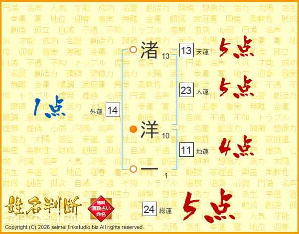 渚洋一さんの総運は24画の5点!