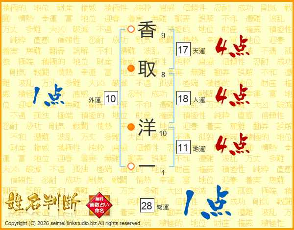 香取洋一さんの総運は28画の1点!