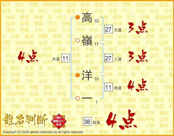 高嶺洋一さんの総運は38画の4点!