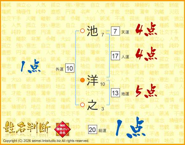 池洋之さんの総運は20画の1点!
