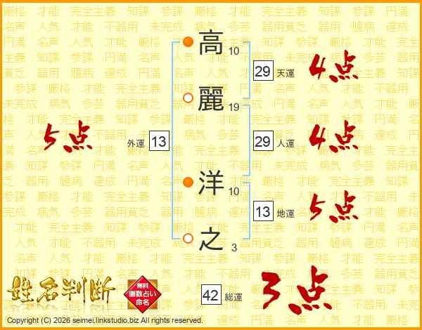 高(10画)麗(19画) 洋(10画)之(3画)