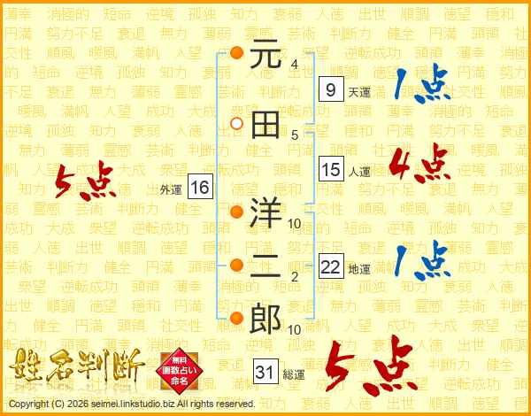 元田洋二郎さんの総運は31画の5点!