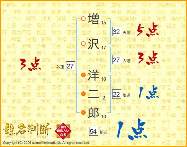 増沢洋二郎さんの総運は54画の1点!