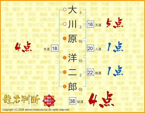 大川原洋二郎さんの総運は38画の4点!