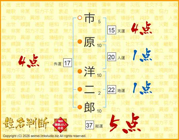 市原洋二郎さんの総運は37画の5点!