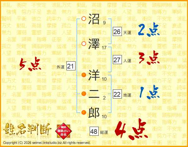 沼澤洋二郎さんの外運は21画の5点!