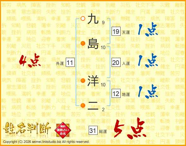 九島洋二さんの総運は31画の5点!