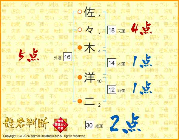 佐々木洋二さんの天運は18画の4点!