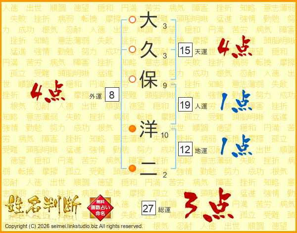 大(3画)久(3画)保(9画) 洋(10画)二(2画)