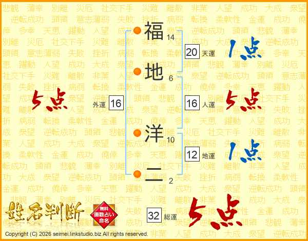 福地洋二さんの総運は32画の5点!