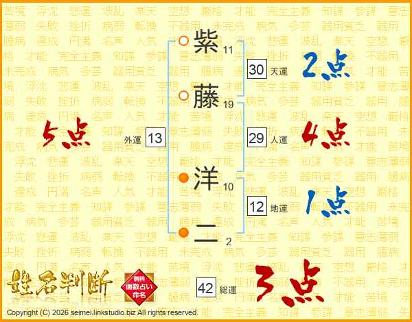 紫藤洋二さんの総運は42画の3点!