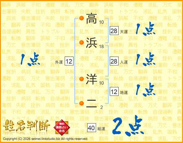高浜洋二さんの総運は40画の2点!
