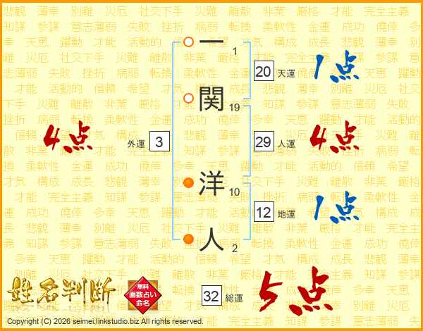 一関洋人さんの総運は32画の5点!