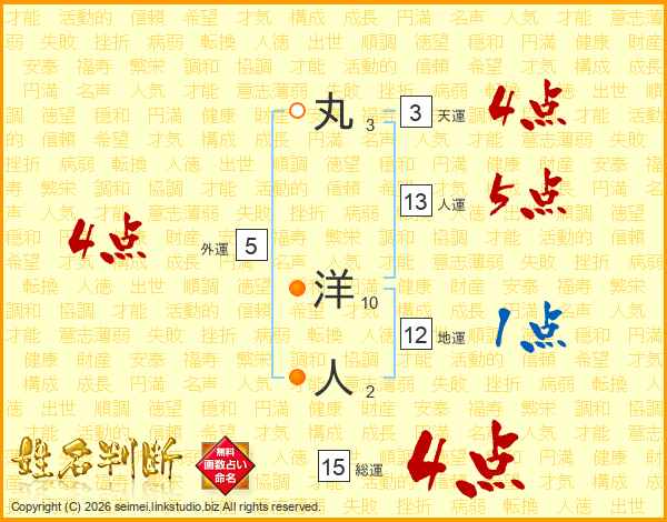 丸洋人さんの人運は13画の5点!