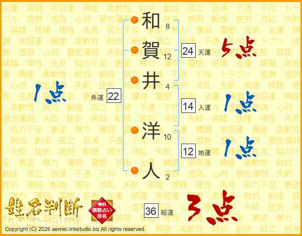 和(8画)賀(12画)井(4画) 洋(10画)人(2画)