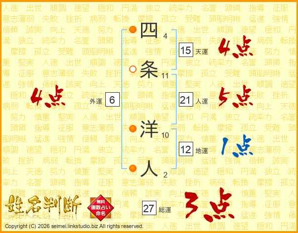 四条洋人さんの総運は27画の3点!