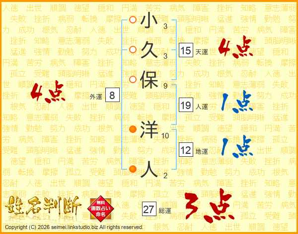 小久保洋人さんの総運は27画の3点!