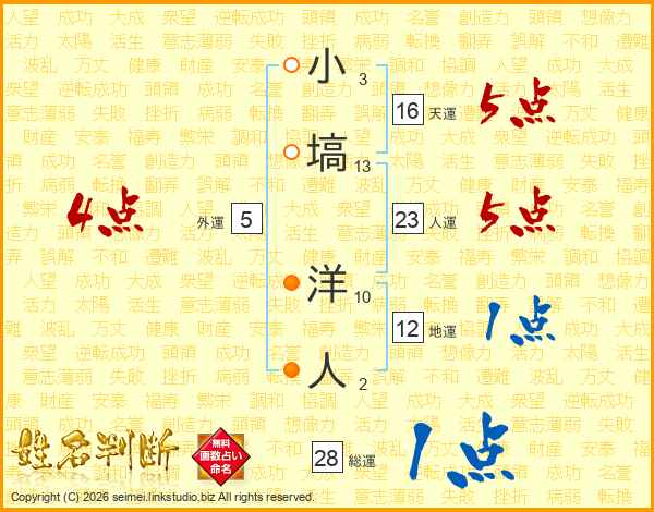 小塙洋人さんの総運は28画の1点!