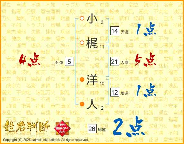 小梶洋人さんの総運は26画の2点!