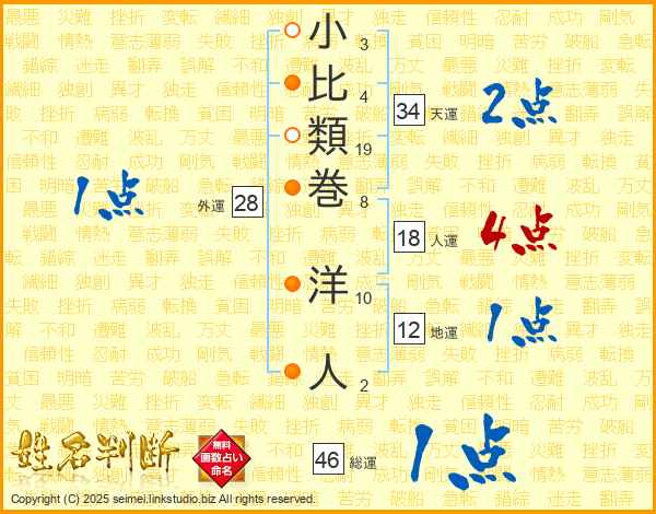 小比類巻洋人さんの総運は46画の1点!