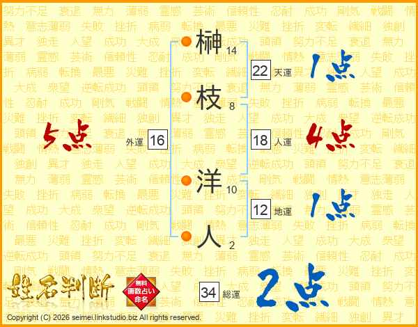 榊(14画)枝(8画) 洋(10画)人(2画)