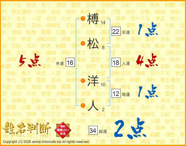 榑松洋人さんの総運は34画の2点!